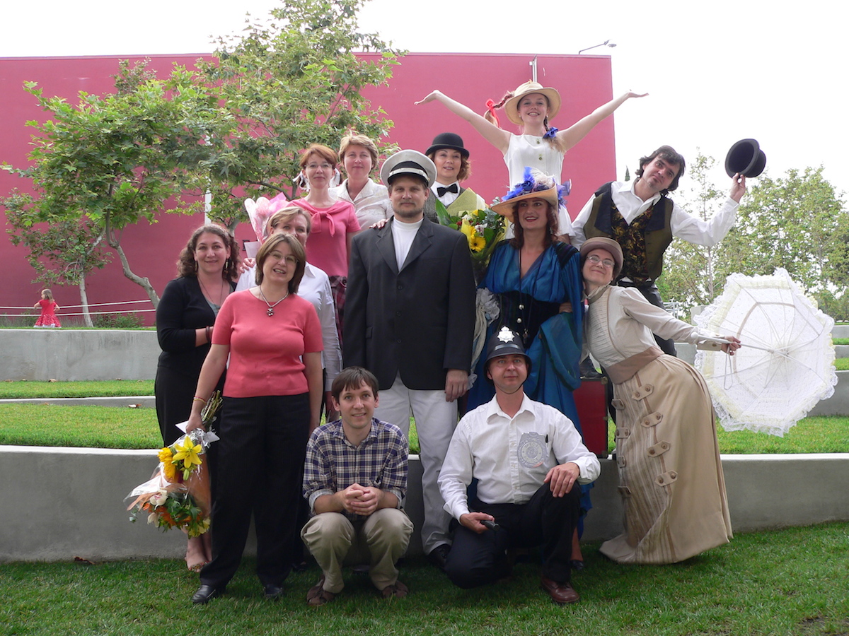 Участники спектакля «Пеппи —длинный чулок» в школе-студии «Карандаш» (Калифорния).